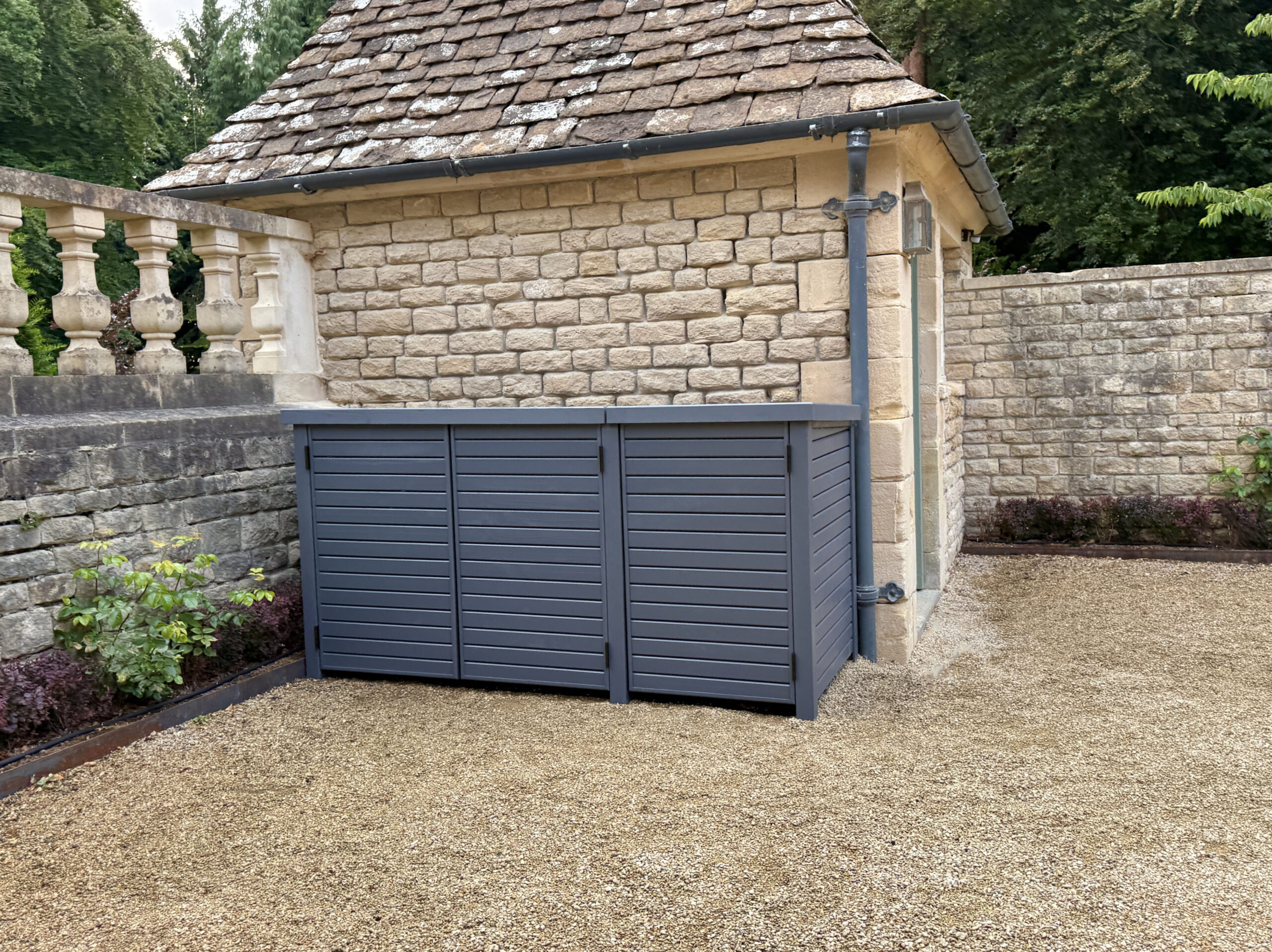Our contemporary design base model is easily adapted to suit all storage needs including bin stores , mobility scooter garages , Tool stores , surf board Enclosures and log stores .